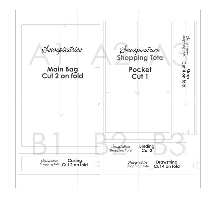 Grab the free foldable shopping bag PDF pattern using the button below. You are welcome to make and sell finished bags sewn using this pattern. Please do not sell, share, or redistribute the pattern itself.